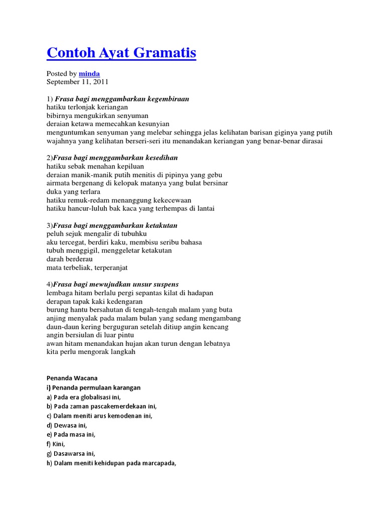 -makmur dari segi ekonomi tetapi muflis nilai kekeluargaan. AYAT-AYAT GRAMATIS n CONTOH KARANGAN. -kongkongan yang selama ini dianggap membelenggu-.